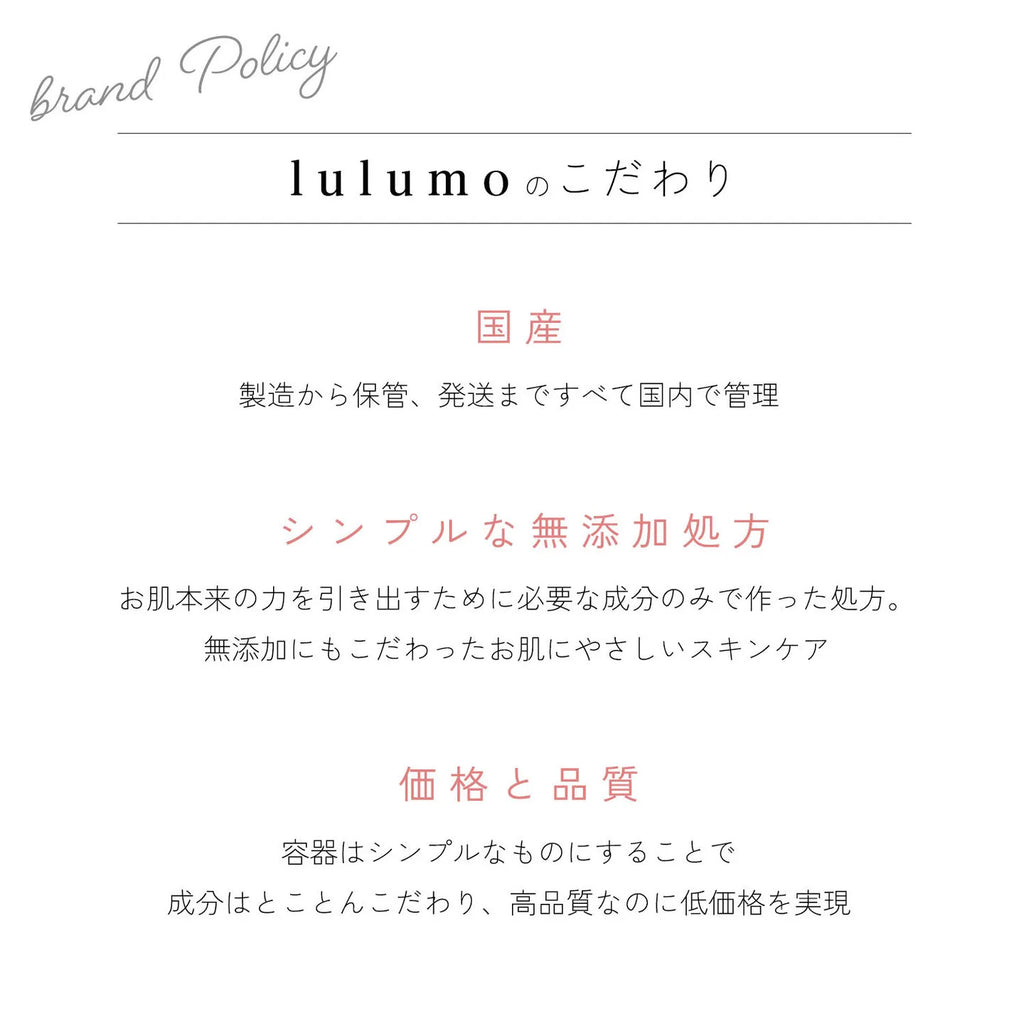 lulumo(ルルモ)は、大人の敏感肌さんがもっと素肌を好きになるスキンケアブランド。配合成分をできる限りの無添加処方にこだわり、必要な成分のみを厳選し、シンプルに作られているスキンケア製品です。