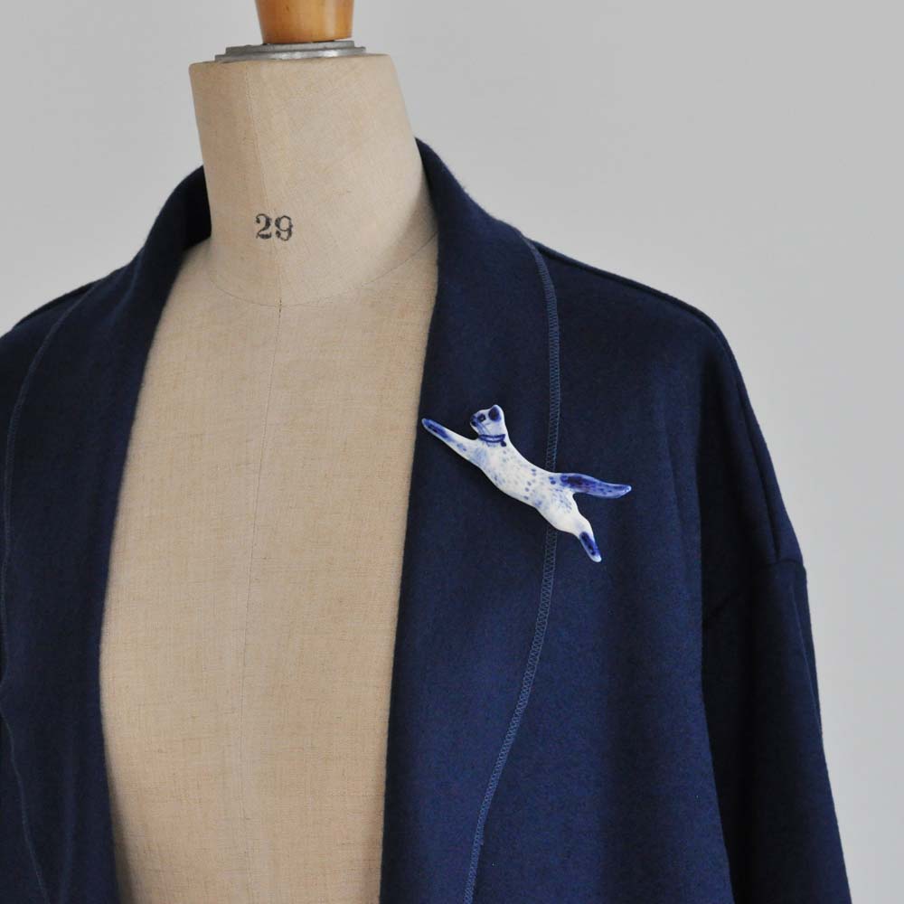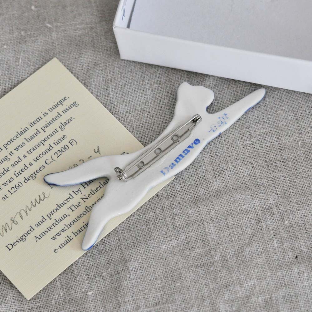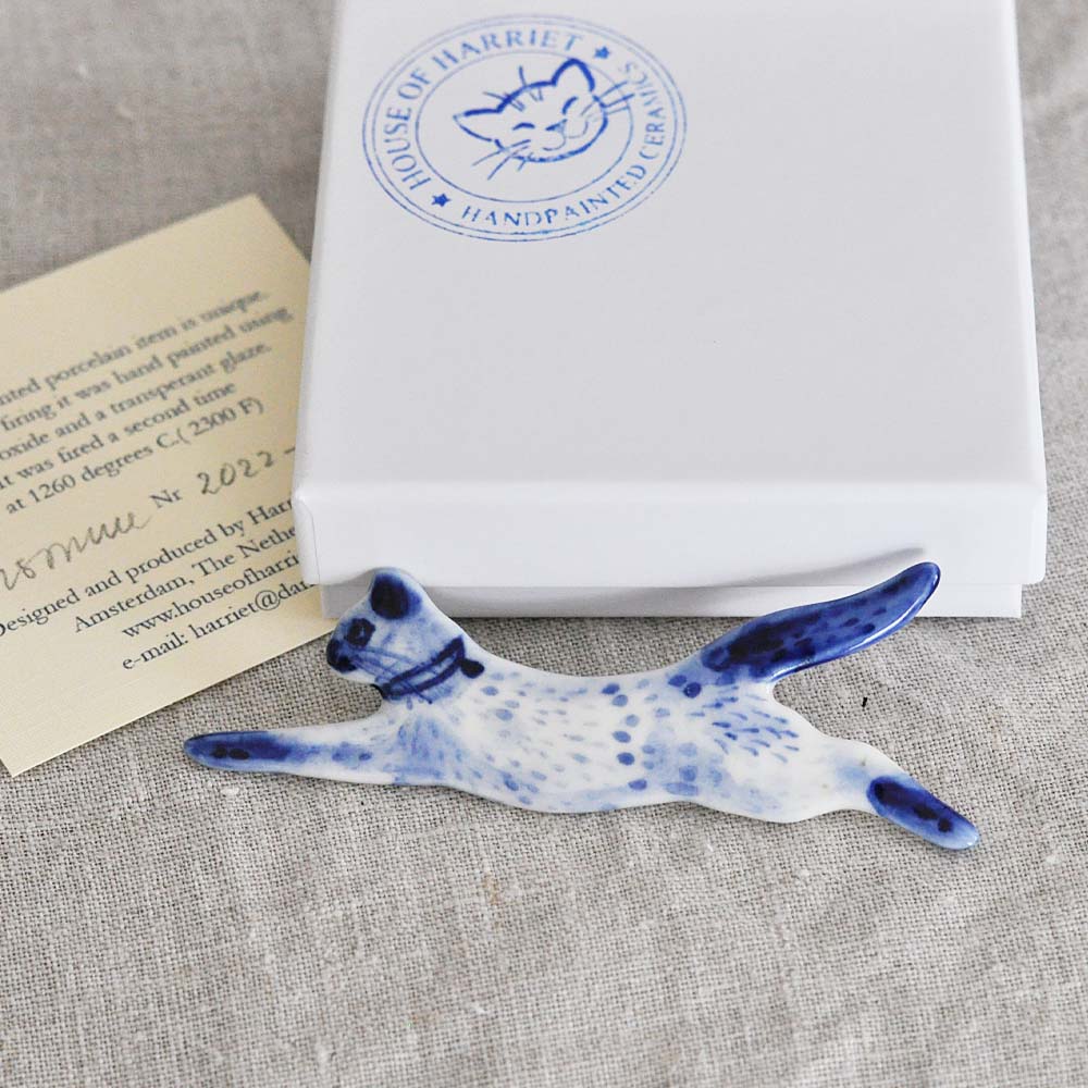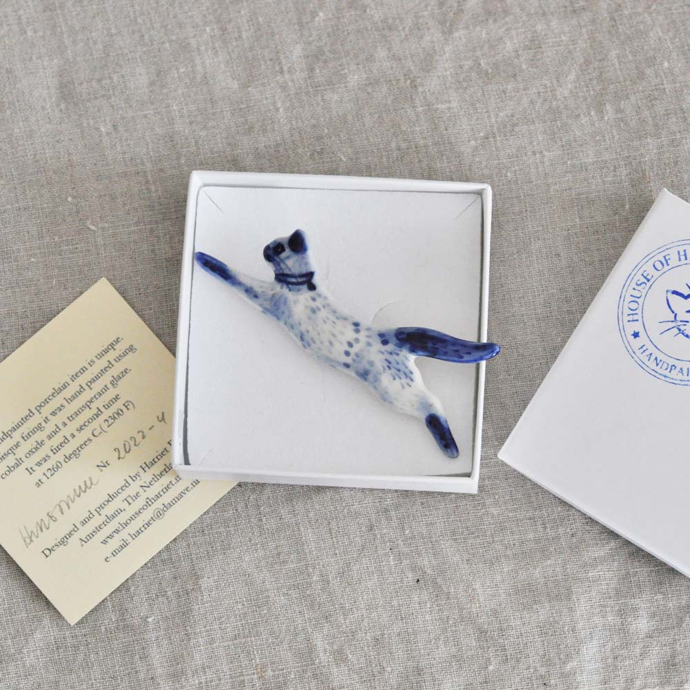 HOUSE OF HARRIET 「白と青の世界」デルフト陶器の猫ブローチ Jumping Cat C 証明書付き