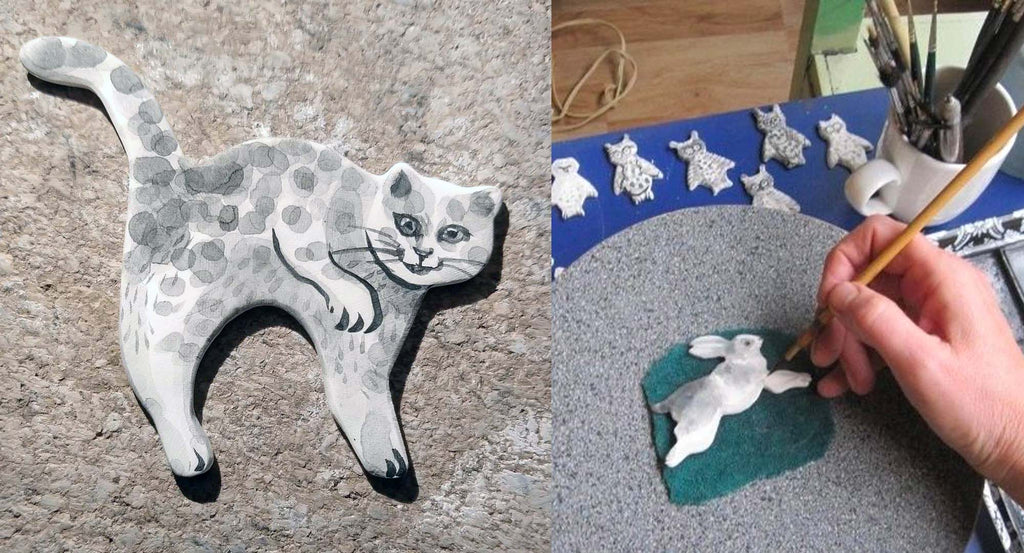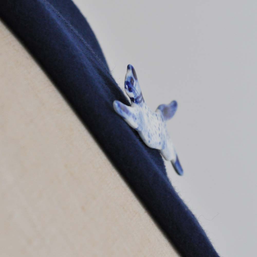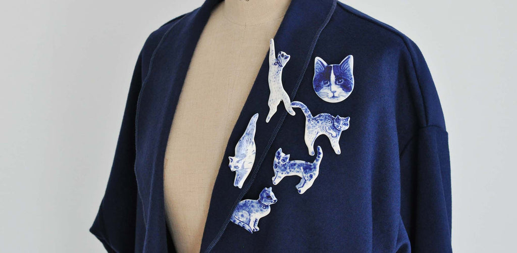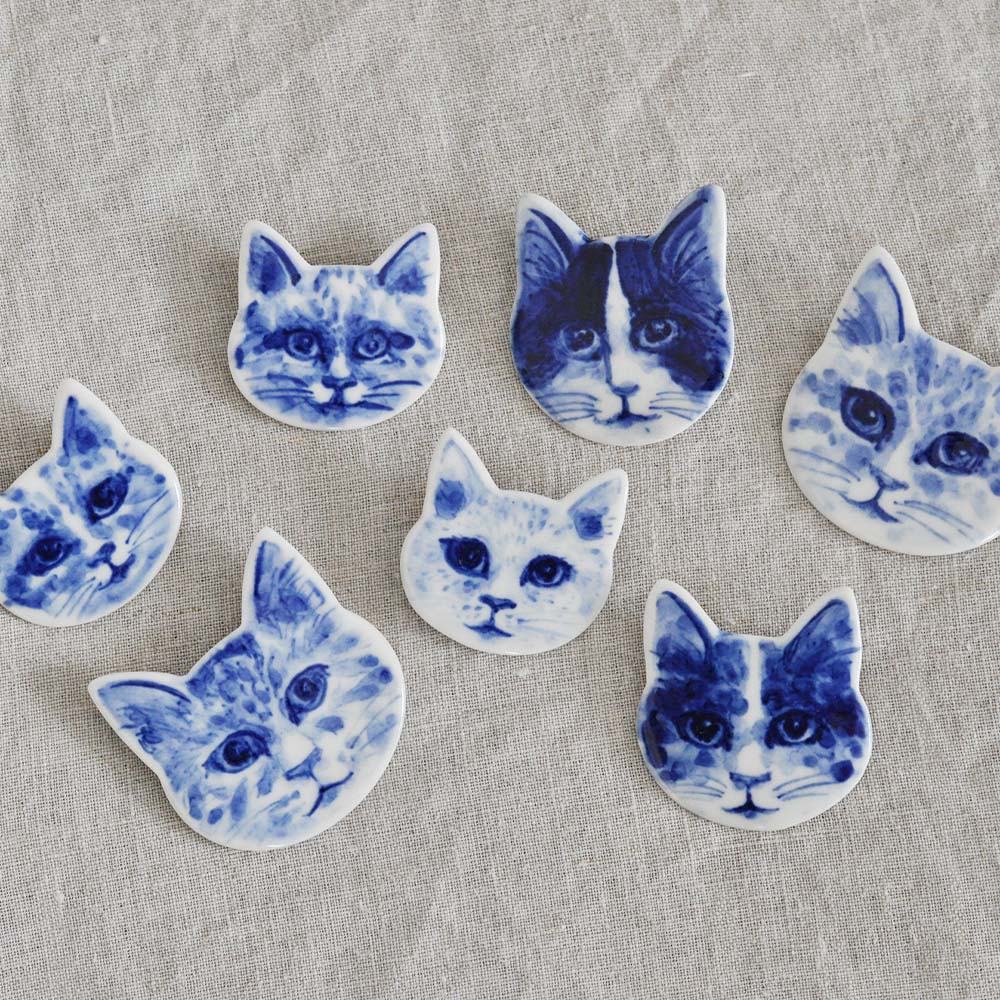 HOUSE OF HARRIET 「白と青の世界」デルフト陶器の猫ブローチ Jumping Cat C 証明書付き